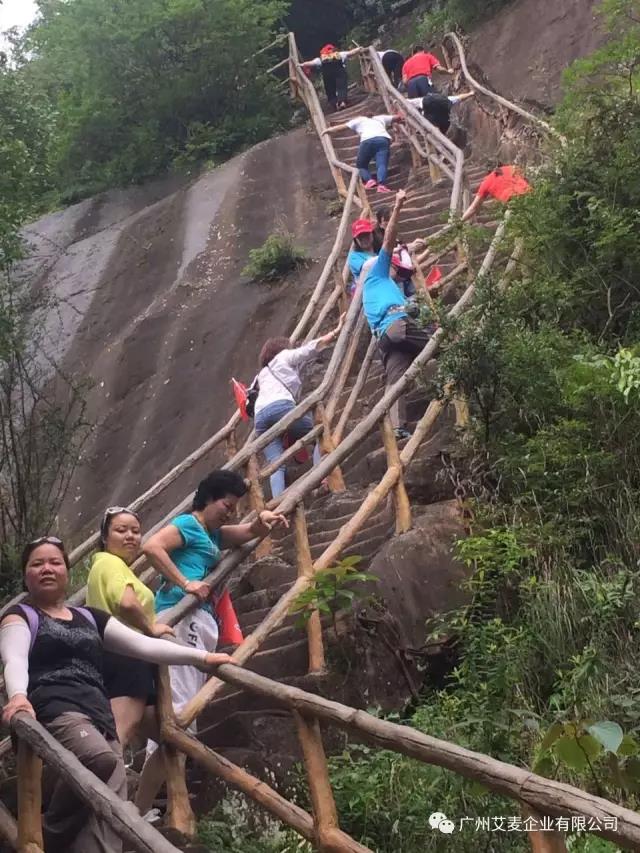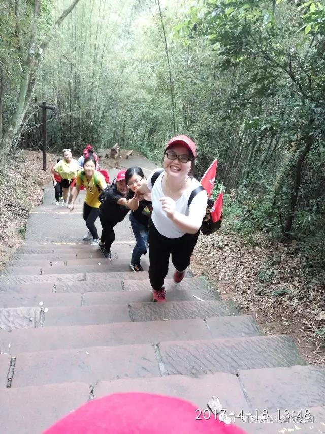 你拉著我,我拉著她,攀山路上雖然崎嶇,但艾麥人團結互進的精神讓不斷前行的艾麥人心里變得舒坦,道路變得順暢,大家累并快樂著,“黨代表”張歆主任做為途步愛好者,一身專業途步裝,掛著勁爆的音樂,領著隊伍在前,廖總監始終在隊伍的最后面,就是為了保證所有人不掉隊,保證了前行隊伍的安全。