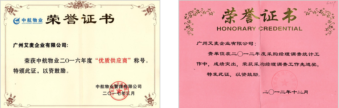 首頁 >> 關(guān)于艾麥 >> Certificates of honour